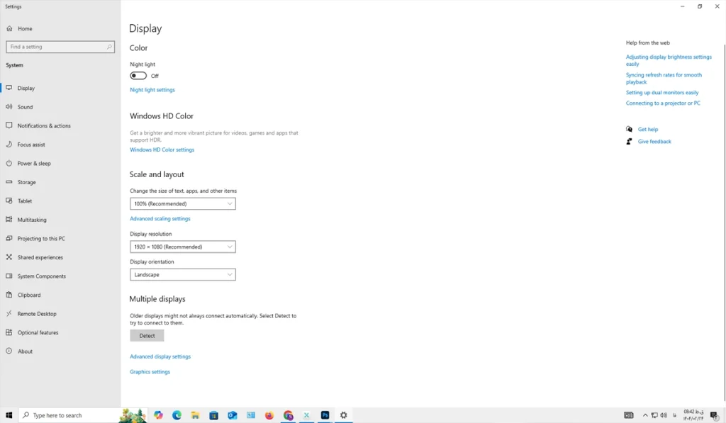 در بخش Scale and layout، گزینه Display Resolution را پیدا کرده و وضوح پیشنهادی (Recommended) را انتخاب کنید.